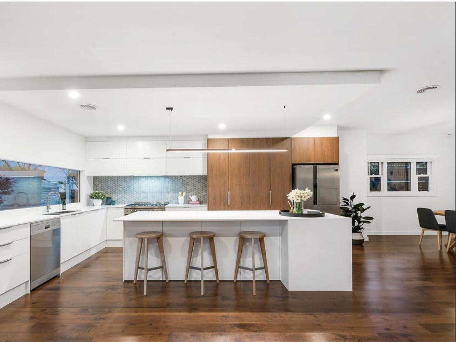 - LED strip lighting under overhead cupboards