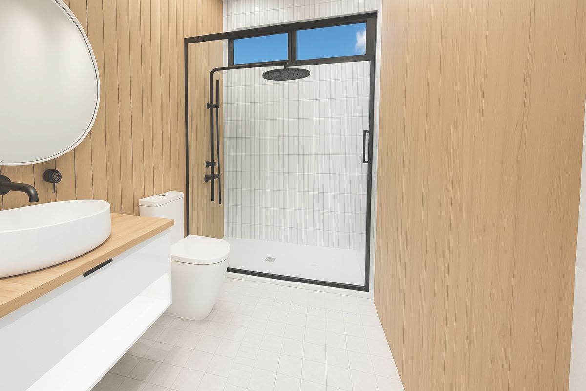 Expansive glazing and sliding doors connect seamlessly with the outdoors, while natural timber interiors bring warmth and calm. Every square metre is purposeful, delivering a home that feels spacious, modern, and easy to maintain.
