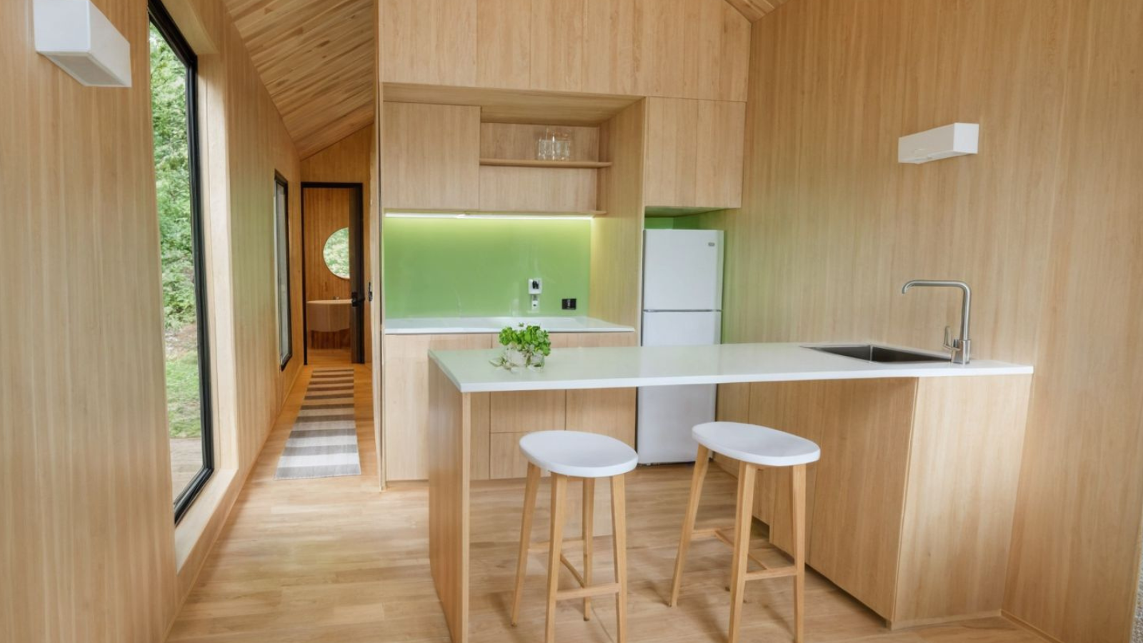Timber-lined interiors (oiled hoop pine) for a natural look and feel